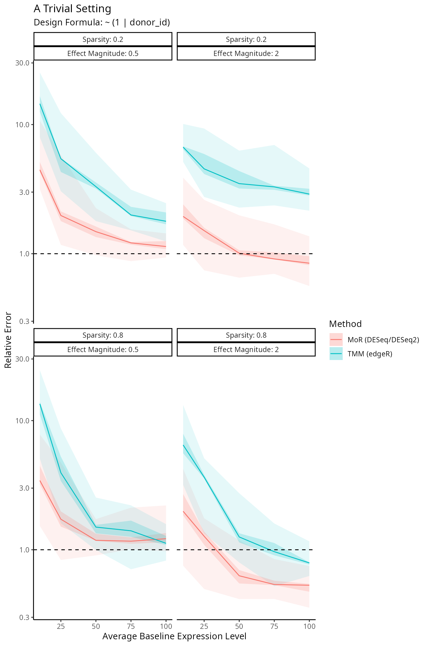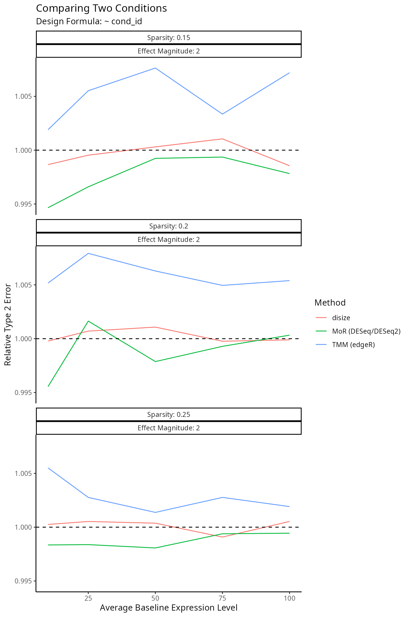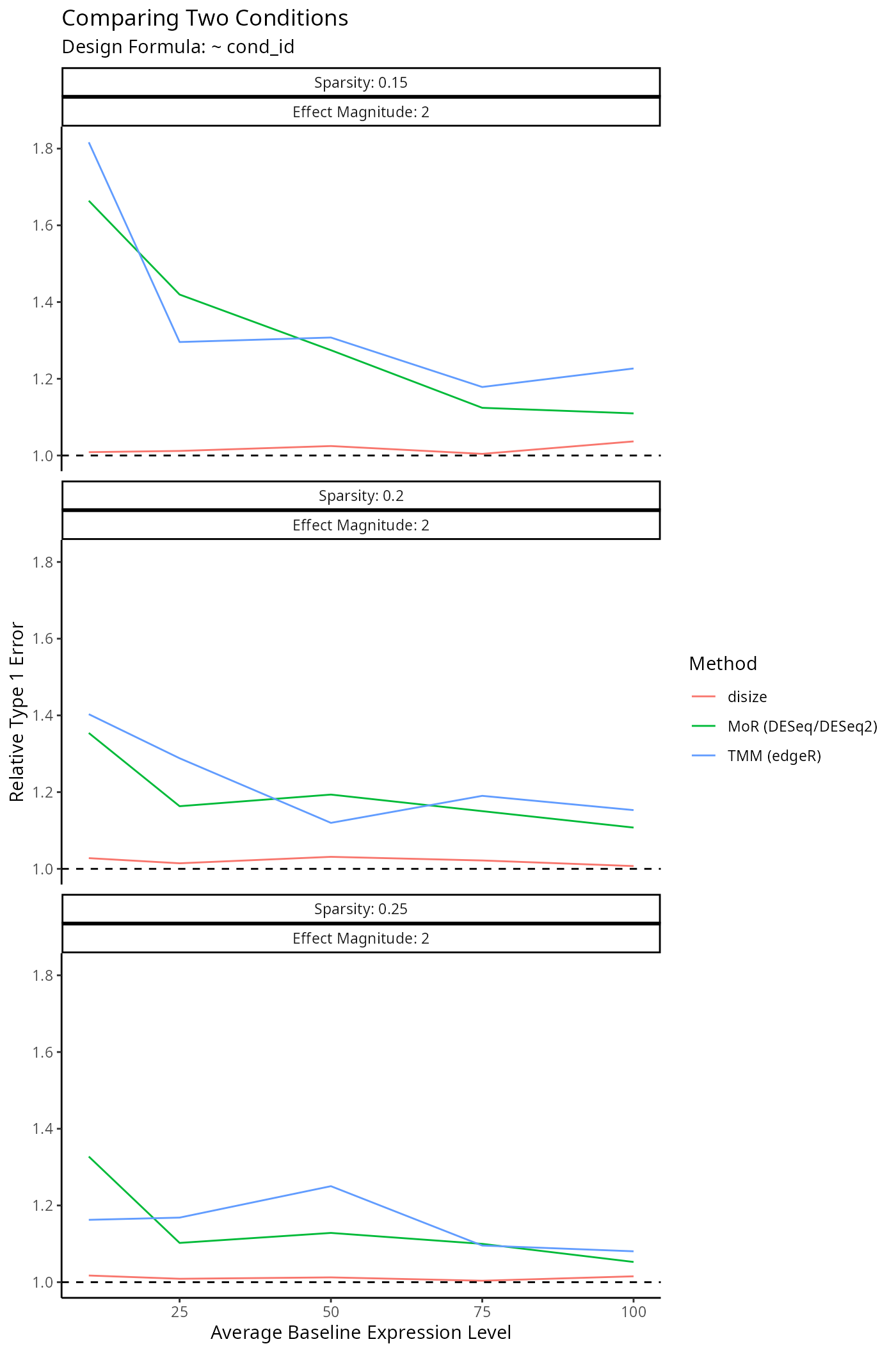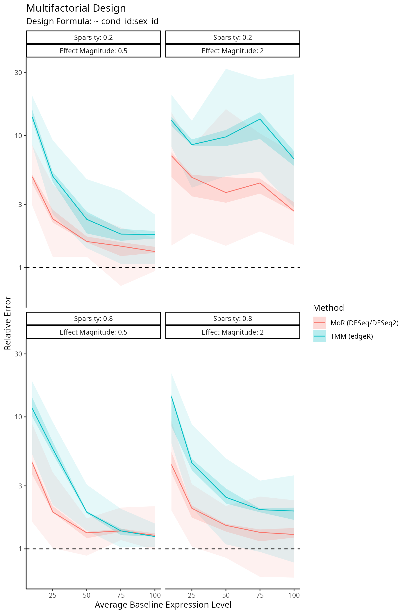To evaluate the impact of each normalization method on a typical downstream analysis, we specify a given experimental design and simulate a dataset similar to the benchmarks above: